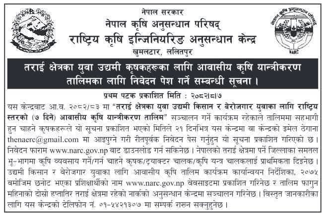 | рдЪрдХреНрд▓рд╛рдмрдиреНрджреА рдЦреЗрддреА рдкреНрд░рд╡рд░реНрджреНрдзрди рдХрд╛рд░реНрдпрдХреНрд░рдо | 2077-11-25 |