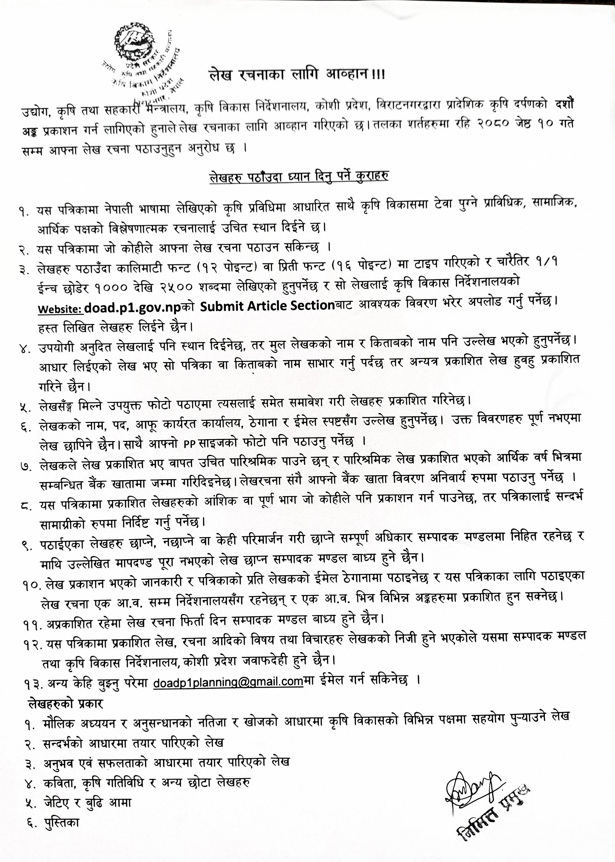 कृषि ज्ञान केन्द्र, धनकुटाको प्रस्ताव आवह्वान सम्बन्धी सूचना!!!