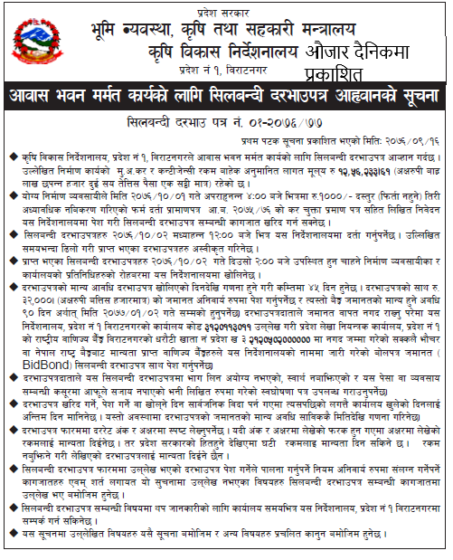 आवास भवन मर्मत कार्यको लागि सिलबन्दी दरभाउपत्र आह्वानको सूचना