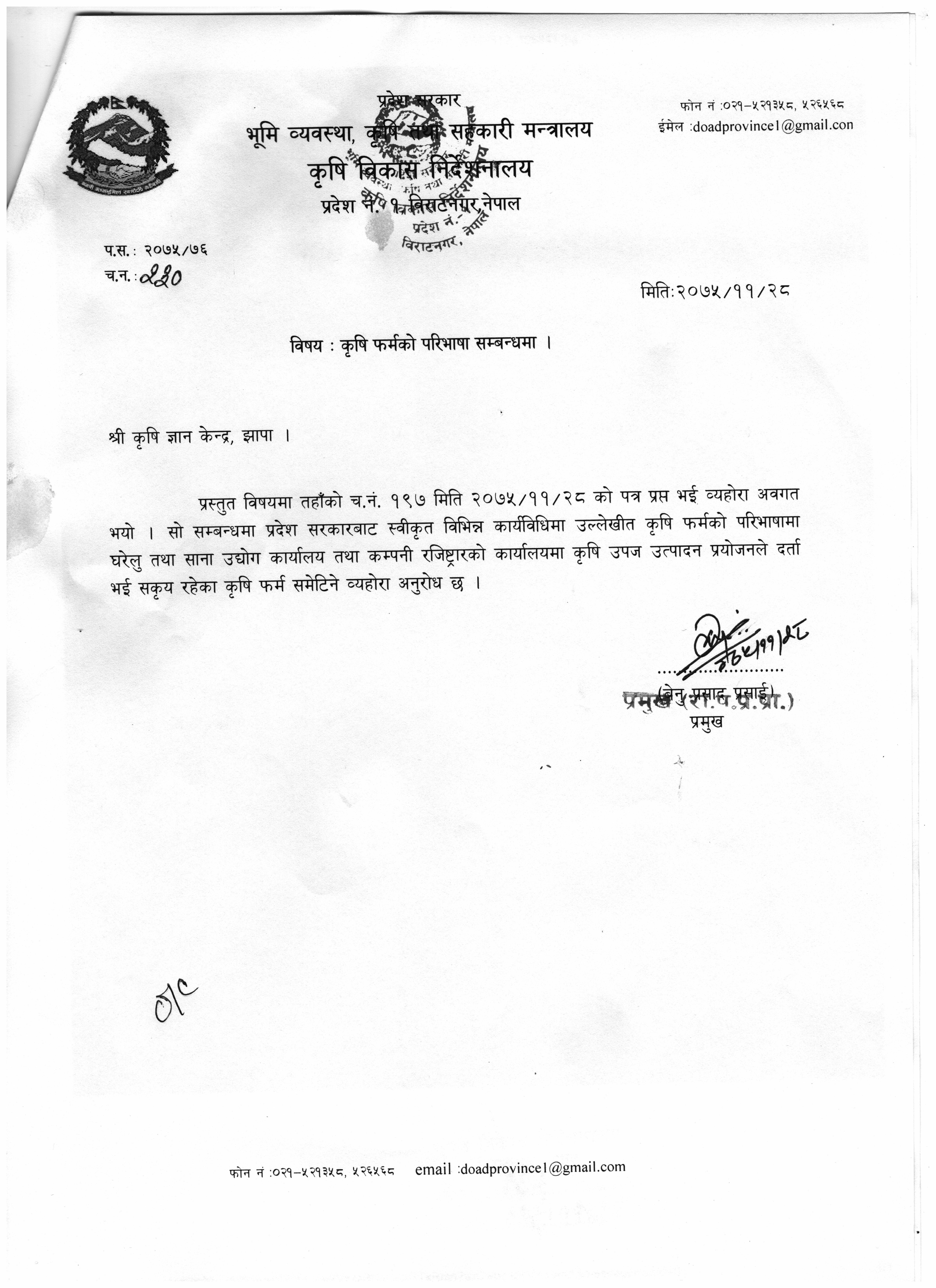 | рдирдореБрдирд╛ рдХреГрд╖рд┐ рдлрд░реНрдо рд╕реНрдерд╛рдкрдирд╛ рд░ рд╕тАМрдиреНрдЪрд╛рд▓рди рдЕрдиреБрджрд╛рди рдХрд╛рд░реНрдпрдХреНрд░рдо | 2077-09-14 |