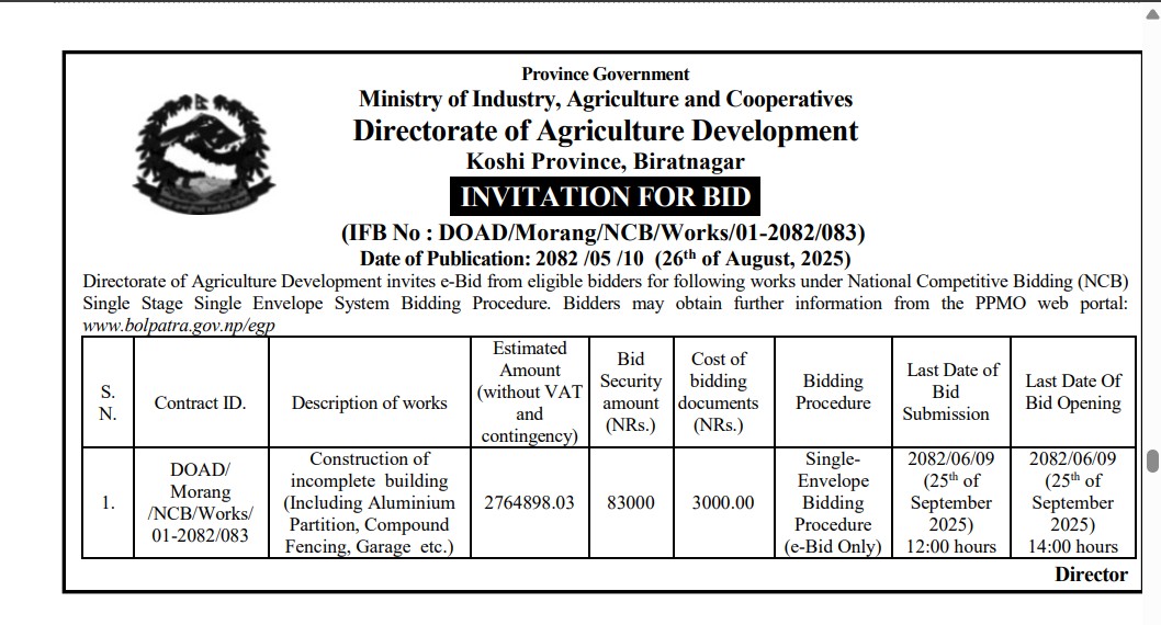 बोलपत्र आव्हान सम्बन्धी सूचना